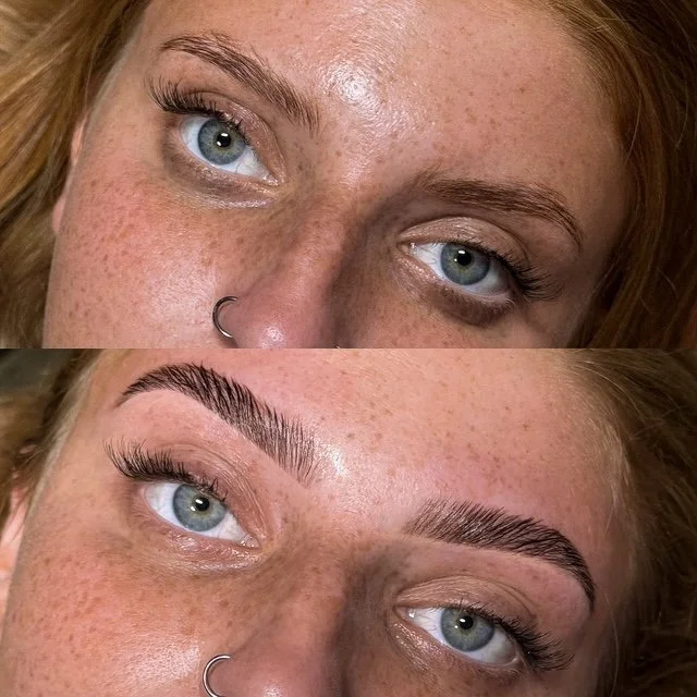 Give your brows a blowout! The brushed up effect. Lamination will redirect the hair + soften the structure allowing you to style them any way you want for 6-8 weeks. "Brow Shaping" is included in the service. Please note you must avoid putting water directly on the brows for 24 hours.